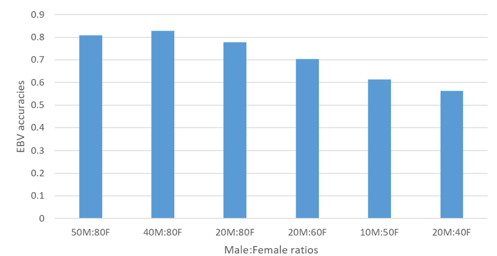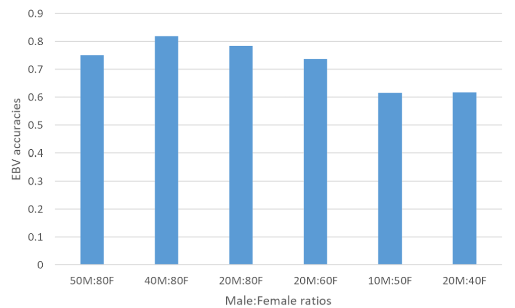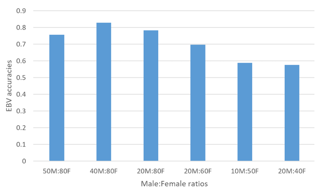 Figure 1. An illustration of accuracy of EBVs in generation 7 across various sex replacement strategies
