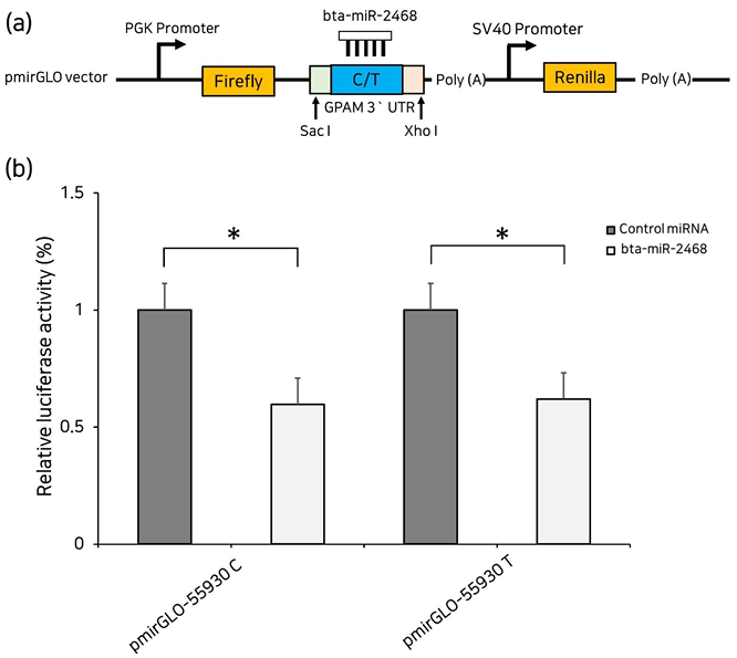 Single nucleotide polymorphism in the seed region of btamiR-2468 and its binding to a specific-site within the 3’UTR of GPAM in Korean Native cattle